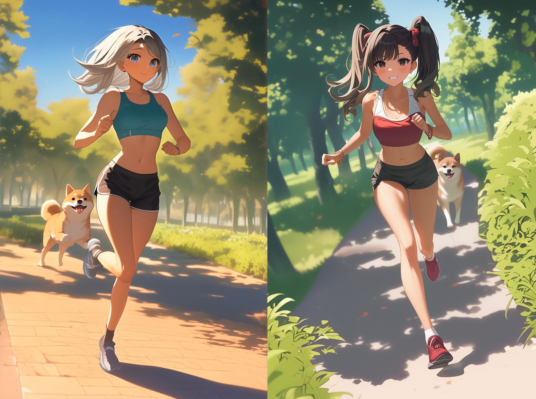 之後是晨輝加入晨跑的圖,上面是新的,下面是舊的: