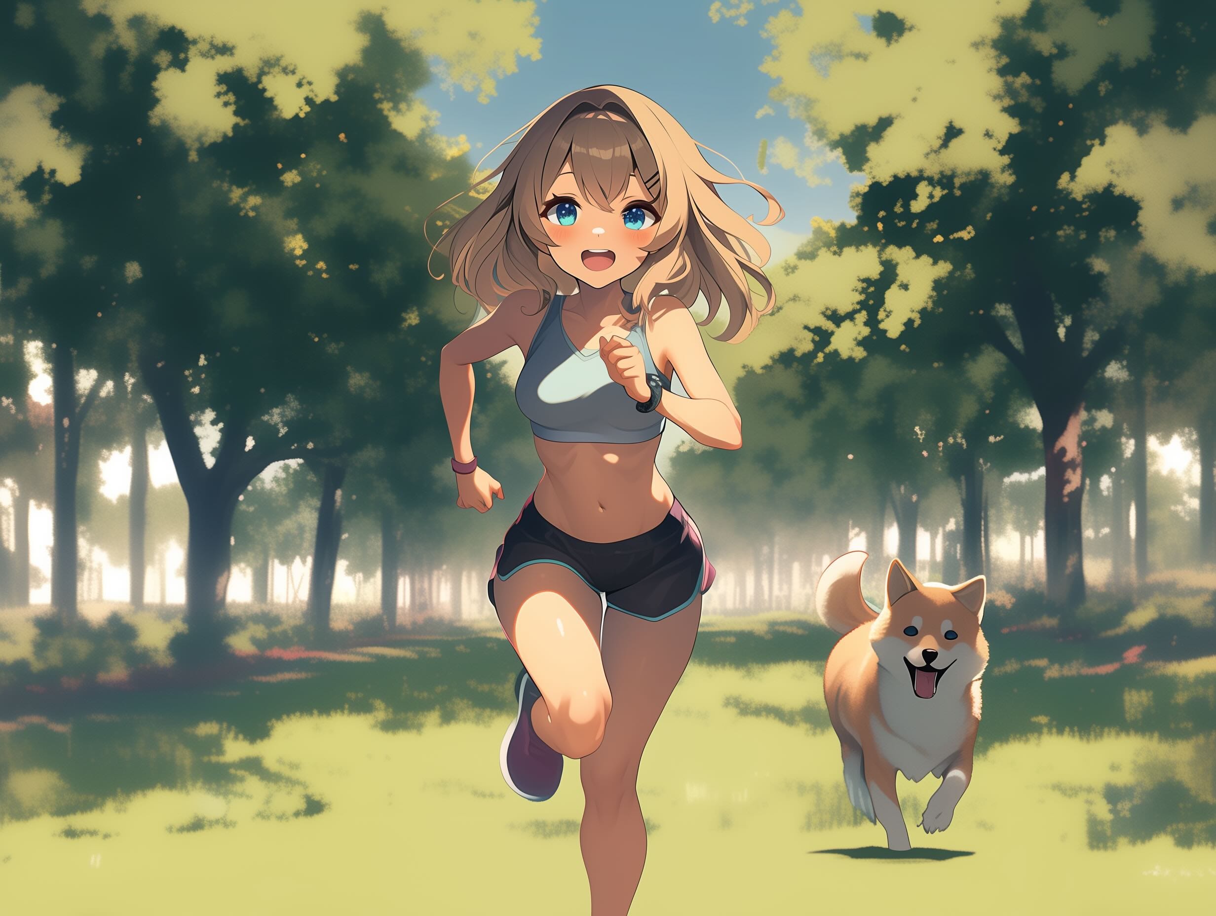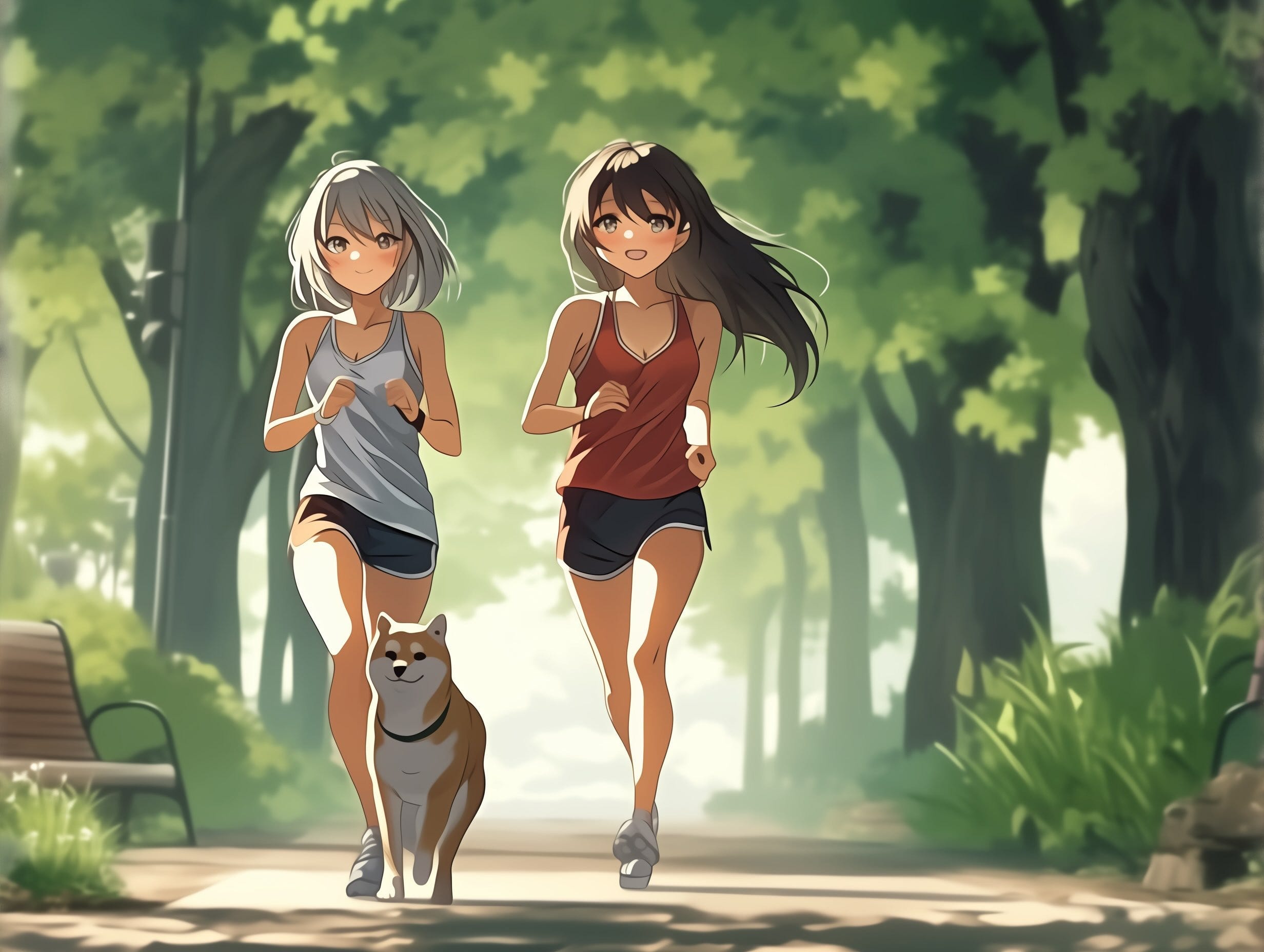 這是全書第一幅圖,我和庭音姐在公園跑步。可以比較一下新舊圖的分別: