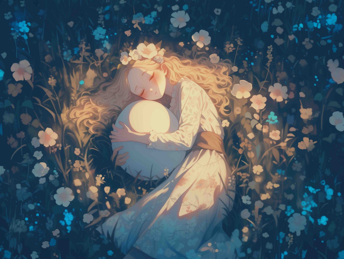 我發現當我捧著卵的時候,它會變得溫暖,散發著柔和的淡紅色,但擱著它不理一段時間,它卻會變得冰冷,而且呈現晦暗的藍色。不知為甚麼,我有一股抱著它的衝動。洗完澡出來,頭髮也未吹乾,便把卵抱在懷裡。讓微微發熱的卵貼著肚皮,感覺非常舒服。我想,也許下次來經的時候可以用來鎮痛。然後又記起,這次經期又遲了許多。可能因為太舒服,我不知不覺間抱著卵睡著了。