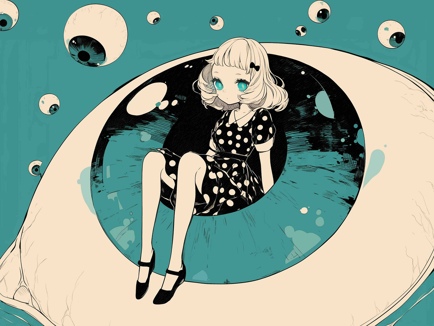 我知道恐怖漫畫裡經常用上眼睛的元素。單眼、多眼或無眼,都會引起觀者的恐慌。也有把眼球畫成可以單獨活動的樣子,如果是成堆的話,便更加令人噁心了。可是,看恐怖漫畫裡的眼睛,我完全不覺得害怕,甚至會忍不住笑出來。與真正的人眼相比,恐怖感實在相差太遠了。也許可怕的不是眼本身,而是被看這回事吧。