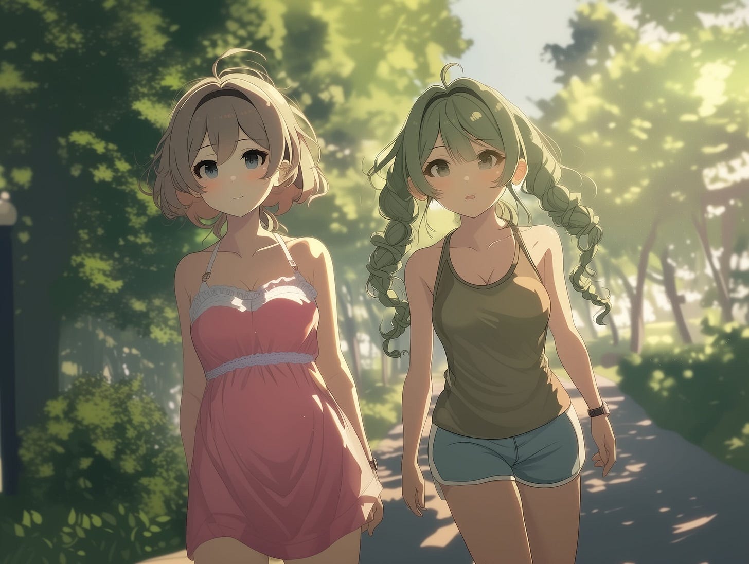 一連游了五天,今天因為姐們有事要早出門,蔓昨晚又在我家過夜,我們便暫停一天,改為帶狐狸去公園散步。狐狸很開心的樣子,我卻有點內疚,覺得自己最近冷落了牠。只是打算散步,我穿了鬆身裙子,蔓卻穿了運動背心和短褲,露出左臂和肩膀的紋身。今天陽光未算猛烈,但走了三、四個圈已經大汗淋漓,狐狸也不停伸舌頭散熱。不過,感覺還是愜意的。