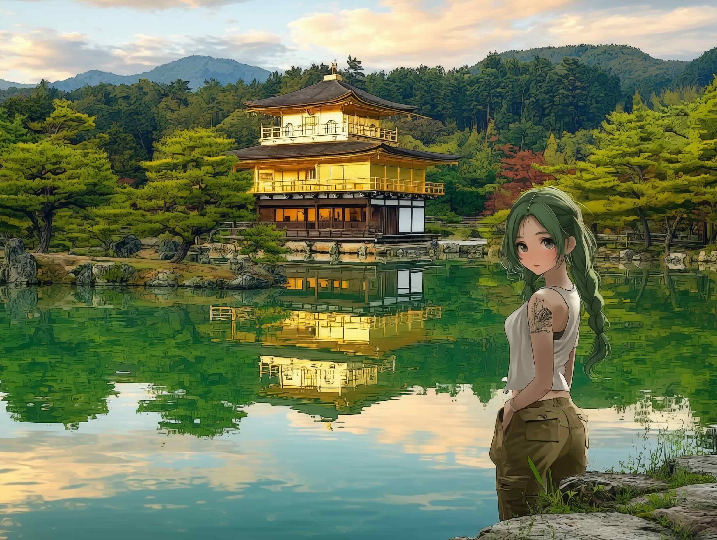 金閣寺的正式名稱是鹿苑寺,所謂「金閣」是寺院內的舍利殿,1950 年被一個僧人放火燒毁,1955 年重建。三島由紀夫以此為題寫了一部小說,喜歡文學的人未讀過也一定聽過。我們跟蔓講述背景的時候,她覺得有點難以理解,說:為甚麼覺得美,所以要燒掉它?或者覺得燒掉它會更美?幸晨姐說:因為耽溺於美而施以暴力,是很日本式的思維吧。我說:芥川龍之介的《地獄變》,寫的也是同樣的主題。那個畫家為了描繪地獄的景象,跟王爺合謀把自己的女兒燒死。庭音姐嘆了口氣,說:這不只很日本,也是很男人的思維。男人不只有毀滅美麗事物的欲望,也有這個權力。幸晨姐說:但換了是女人的世界,便沒有《金閣寺》和《地獄變》這樣的文學巨著了。庭音姐聳了聳肩,說:那又何妨?